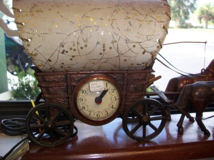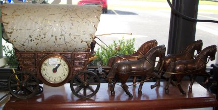 This is another of the United clock company. It is the covered wagon and team of horses.