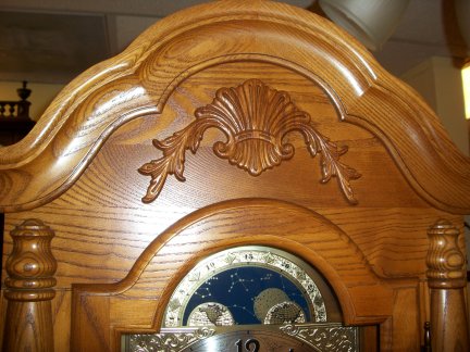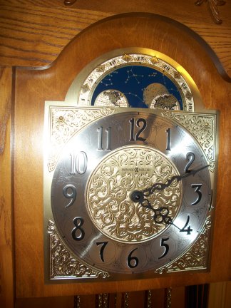 has a beautiful face with a stationary moon dial. The clock is chain driven and