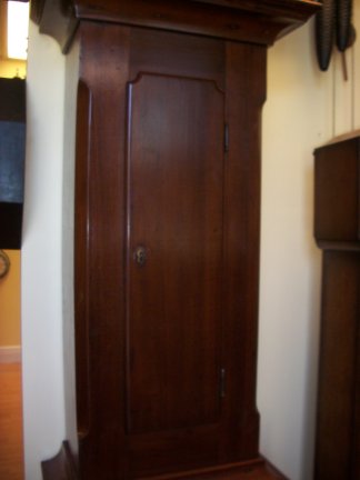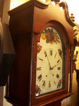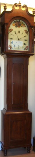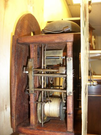 This is an 8 day time and bell strike grandfather clock, circa 1865.