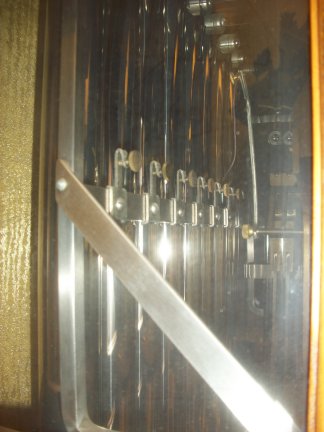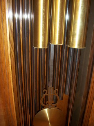 Close up view of the tubes and pendulum with the door open.