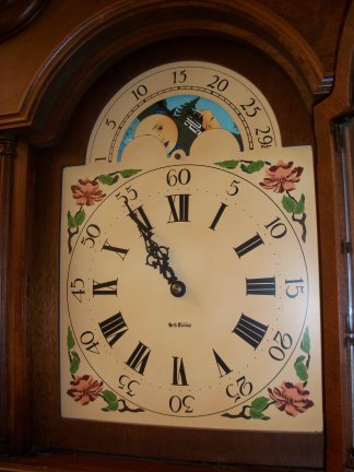 I have the hood door open to show the antiqued face and the moving moon dial.