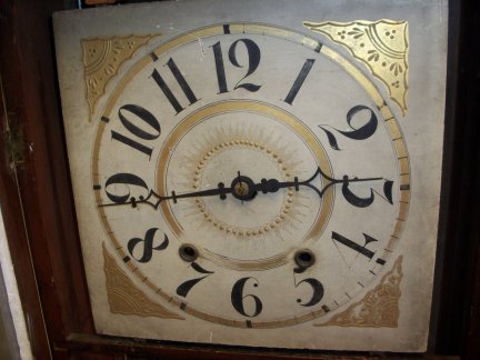 is a 30 hour wooden works clock made by Charles Stratton in 1836. The works and