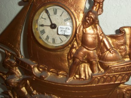 is an iron clock with a 30 hour time only balance wheel movement. The theme of